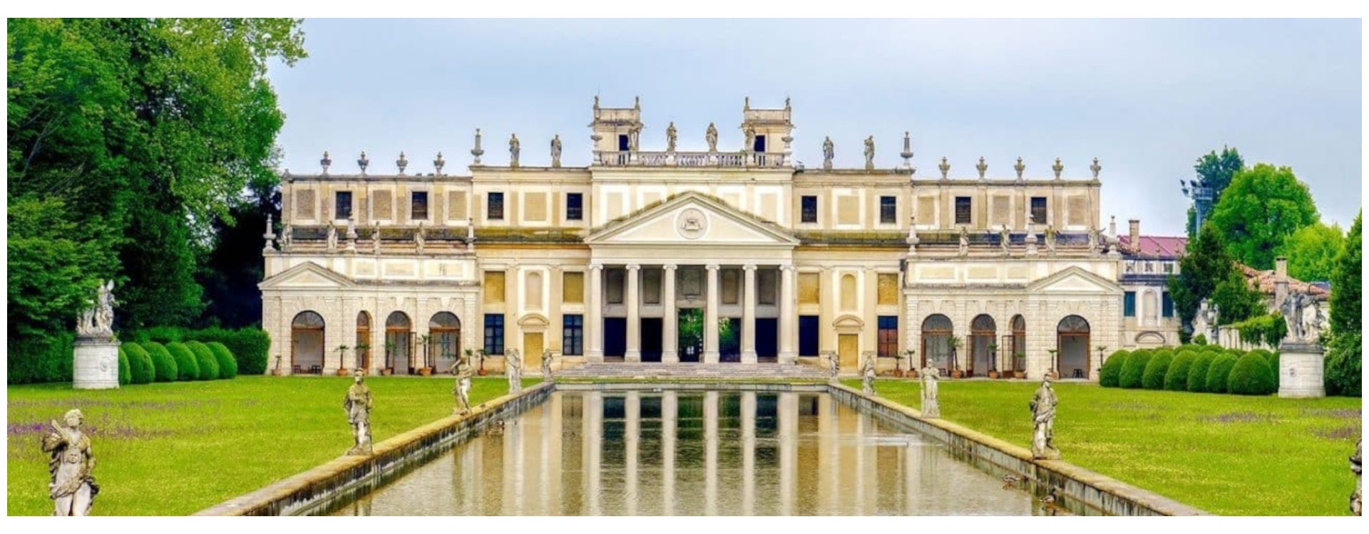Lungo il percorso d’acqua emersero una ad una le residenze di campagna strutturate su un asse centrale e servite da un approdo sul fiume con annesso un primo giardino di ridotte dimensioni e con semplici partiture geometriche. L’edificio principale con ai lati le barchesse e gli annessi rustici aperti sulla corte, in genere era diviso da un muro e da un secondo e più ampio giardino per terminare con un brolo dal lato della campagna, uno scorcio dedicato alla coltivazione di frutta e ortaggi spesso recintato e ornato. Tra XVII e XVIII secolo i ricchi proprietari gareggiarono per conferire magnificenza alle residenze ormai concepite come luoghi per lo svago nella bella stagione. La villa quando fu costruita nella prima metà del Settecento era sia villa mondana che di rappresentanza; un’epoca che nonostante il declino della Serenissima, non limitò le famiglie illustri a ostentare ricchezze e un trattamento ospitale verso personaggi illustri quali regnanti e nobili. Una residenza ormai rivolta come uno specchio sull’acqua nella sua più totale maestosità ove le parti più alte dell’edificio dovevano essere le più curate adornate da timpani, pinnacoli, altane poiché più visibili allo sguardo di chi giungeva da lontano. La barchessa divenne foresteria con pareti affrescate per il piacere visivo degli ospiti. Versailles restò un punto di riferimento grazie alla permanenza di Alvise Pisani nel periodo in cui fu ambasciatore in Francia. Una villa come luogo di accoglienza per nobili, regnanti, sovrani e principi di tutta Europa oltre che percorso di transito per il ristoro dei cavalli, e infine comprata da Napoleone. Villa Pisani, detta originariamente di Santo Stefano, nasce come semplice costruzione tardo cinquecentesca, rimodernata nel Seicento con l’aggiunta di un pronao e corredata di un giardino contenuto retrostante. Interamente demolita nel 1720 l’anno in cui la famiglia intraprese la realizzazione della grande villeggiatura. I Pisani di Santo Stefano si erano distinti per l’abilità nei commerci e le gesta militari in suolo veneziano. Sin la Quattrocento diverse le cariche militari e civili che alcuni membri della famiglia ottennero dalla Serenissima permettendo di ambire nei primi anni del Settecento al soglio dogale veneziano. Alvise Pisani, procuratore dal 1711 e futuro doge si impegnò insieme al fratello Alvise ad accrescere l’importanza della famiglia cercando degli espedienti che potessero concretizzare il potere nobiliare. A Venezia ristrutturarono il palazzo di Campo Santo Stefano, oggi conservatorio Benedetto Marcello, affidandone la progettazione al conte, letterato e architetto Girolamo Frigimelica Roberti (1653-1732) di Padova che si occupò anche del primo progetto della villa e del giardino. I Pisani acquisirono i terreni intorno alla villa e nel 1720 realizzarono i primi padiglioni verdi, sulla base del progetto dell’architetto come la torretta del labirinto, le scuderie e il recinto con il portale del Belvedere, i portali laterali al palazzo e le alte finestre a tabernacolo. Nel 1721, prima che l’architetto lasciasse la regione per recarsi alla corte di Rinaldo III d’Este a Modena (dove morirà nel 1732), destinò a Almorò Pisani i disegni e i modellini delle diverse fabbriche attuate a Stra. Il suo progetto originario venne poi accantonato forse perché ritenuto troppo costoso o probabilmente perché giudicato non più adatto al nascente rigore neoclassico dei primi decenni del Settecento. Il modellino ligneo del palazzo non realizzato è custodito oggi al museo Correr di Venezia. Dopo la morte del Frigimelica, Alvise Pisani (doge nel 1735), intenzionato a completare la villa e a competere con le più grandi realizzazioni europee del secolo, consegnò il progetto all’architetto Francesco Maria Preti (1701-1774), famoso per la realizzazione del Duomo di Castelfranco, sua città natale. Completò il progetto in tempi brevi. Nel 1761 venne intrapresa la realizzazione del grande affresco della sala da ballo dal Tiepolo del “Trionfo della famiglia Pisani”. L’accademia voluta da Marina Sagredo nel 1750 circa fu affidata al Longhi che operò a Stra tra il 1763 e 1766. L’Accademia fu terreno fertile per l’avviamento in suolo regionale di artisti che con le loro realizzazioni continuarono ad arricchire gli ambienti della villa; un esempio Jacopo Guarana, allievo di Tiepolo che nel 1770 affrescò alla Sala di Bacco o Giuseppe Zais che dipinse i paesaggi del corridoio.